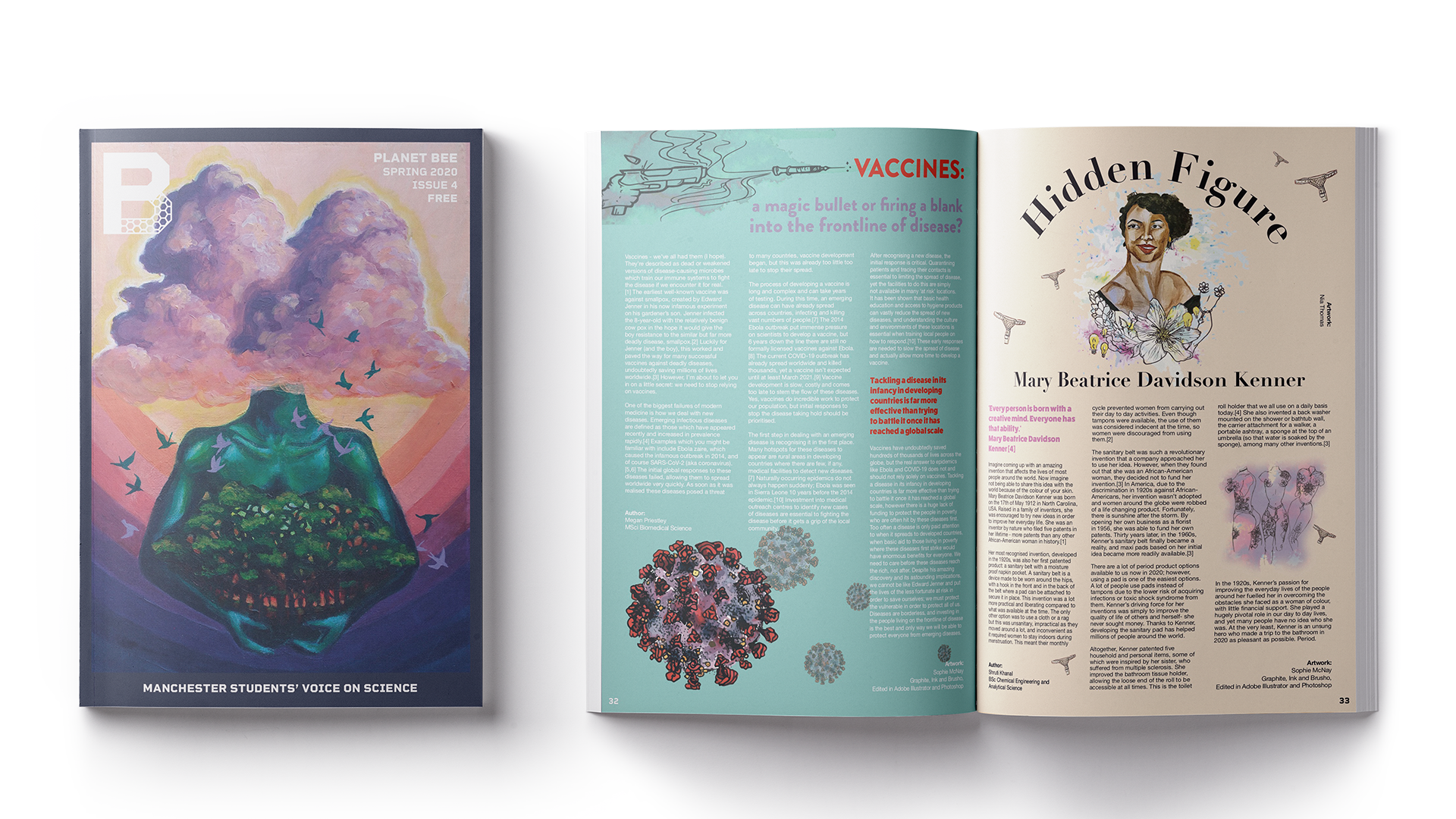 Creating engaging spreads for a Science magazine. Collaborating and communicating with another student Graphic Designer to collate the articles and illustrations to ensure the magazine was cohesive.
